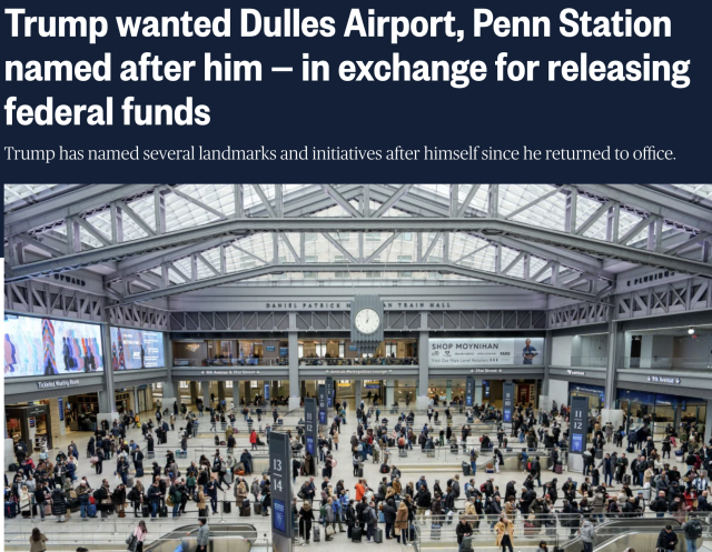 据多名知情人士披露,一场围绕联邦基础设施拨款的政治风波,正在华盛顿与纽约之间持续发酵。核心争议并非资金规模本身,而是一个被多方形容为“前所未有”的交换条件——总统唐纳德·特朗普希望用自己的名字,来为纽约的Penn Station和Dulles International Airport“冠名”。