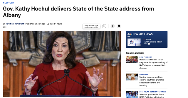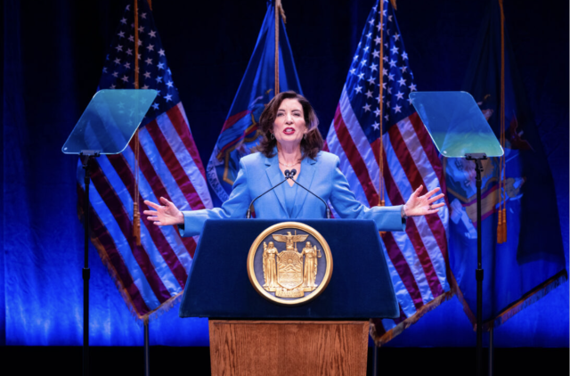周二,纽约州州长凯西·霍楚(Kathy Hochul) 在奥尔巴尼发表 2026年州情咨文,主题定为——“你的家庭,你的未来,我的奋斗。”