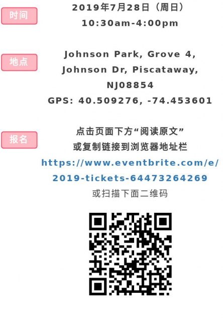 一年一度的夏季校友联合野餐园游会将于7月28日星期日在Piscataway的Johnson Park Grove 4举行。活动注册将马上截止,报名请从速!