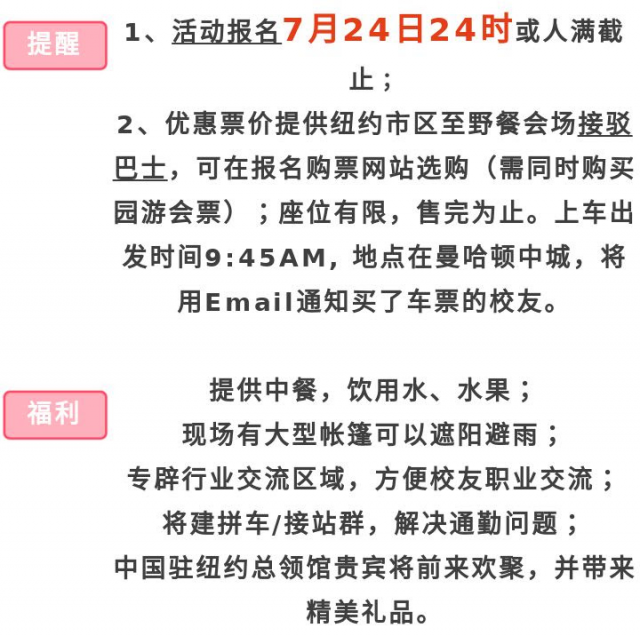 为方便纽约市内校友,我们专门以极其优惠的票价提供大巴服务往返。