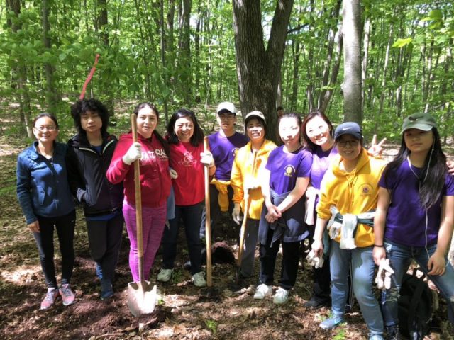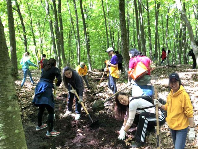 五月十一日风和日丽。春季洁淨活动有七十多位义工来自六个团体,包括南平原高中,密郡律师协会,普林斯顿环境工程服务机构等。当日早晨九点签名报到后,义工们被分组。一组人清理公园内雨水花园凋谢的植物,另一组人在湖边拔除野草和检拾垃圾。雨水花园是为土壤吸收和过滤而设计的种植洼地,确保雨水作为地下水供给植物。检拾的异物有五个车轮和一只十六尺长的独木舟。除了清理工作外,还有四十多人进入森林去开闢新的徒步小径。他们用耙子,铲子清除腐叶和树根,开辟了一段七百尺长的步行小道。李俊红表示,“三个小时的劳力使义工们感到很疲累,他们却能坚持完工。大家看到自己的成果,都颇有满足感。每个干净整洁的公园确实是需要大家的努力去维护支持的。”
