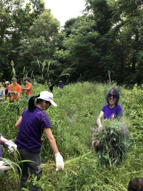 参加六月一日活动的八个团体包括男童子军、北布朗斯克图书馆、认知技术解决机构等。义工有60多人。他们分组工作,一组人用修枝剪除去入侵植物,一组用除草工具和双手去连根拔除杂草,另组人撒播草种,还有一组去清扫蜜蜂授粉筑巢栖息地。 最后,密郡青年环保组去清理步道,也把爱迪生市政府捐的15支树苗(白橡树、朴树、黑胶树) 种植在森林公园内。