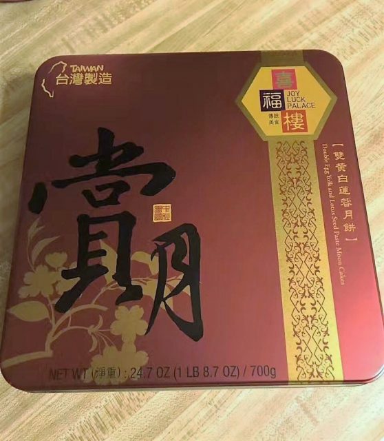 台湾月饼,从“双黄白莲蓉”字样看得出就是我们通常所说的广式月饼。