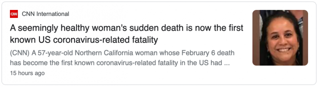 11.可怕!美国一健康女子流感康复暴毙成为首例新冠死亡病例