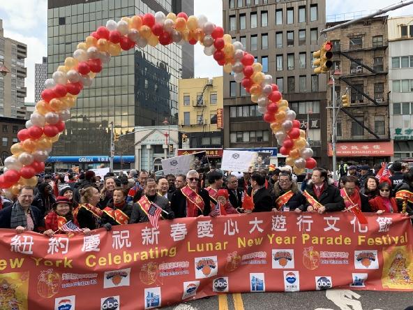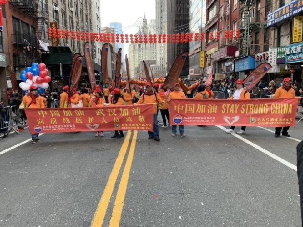 第21届纽约新春爱心花车大游行,9日于曼哈顿华埠热闹展开,20辆花车、2万5000人的游行队伍吸引各族裔民众夹道观赏;主办方与民选官员带领民众高喊“中国加油”、“武汉加油”的口号,为中国抗击新型冠状病毒肺炎疫情打气,同时呼吁民众常来华埠消费,让华埠保持繁荣。