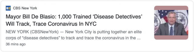 4. 白思豪表示,市府正在着手建立一个“追踪和测试团队”,当纽约市进入“低传播阶段时”该团队将有助于抑制病毒进一步传播。白思豪说:“届时即使保持社交距离的规定有所调整,团队仍将把重点放在预防感染上。”