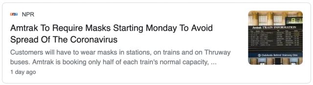 据侨报纽约网报道,从下周开始,美铁(Amtrak)将要求所有乘客佩戴口罩或面部遮盖物。