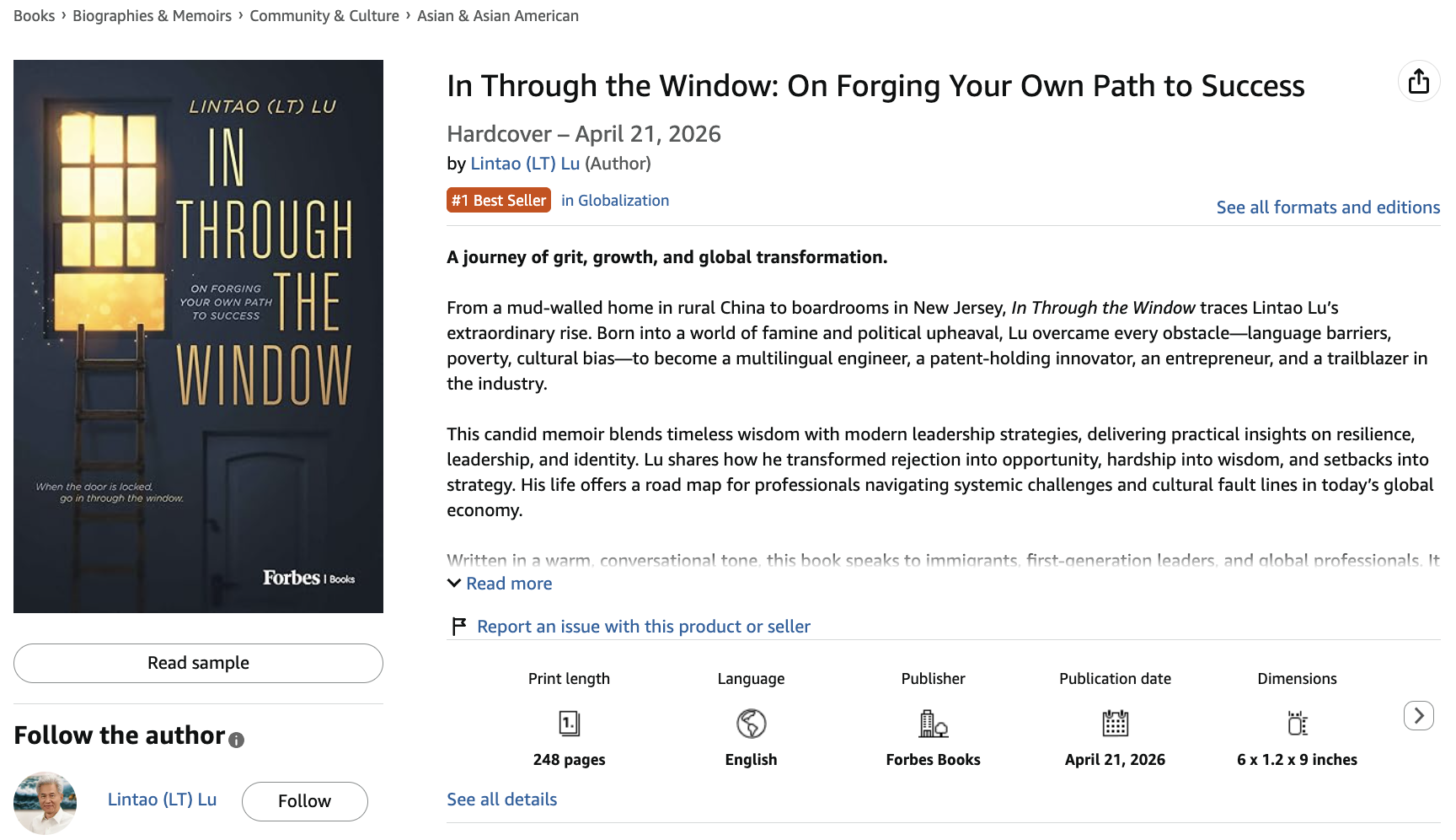 从乡村泥屋到世界舞台:卢林涛博士回忆录《从窗户爬进去》全球预售开启,为逆境奋斗者点亮明灯