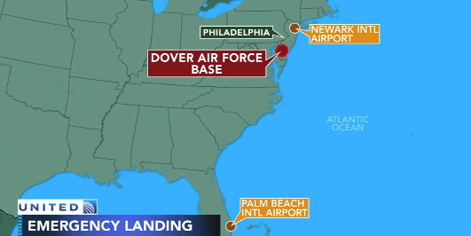 4月16日,美国联合航空公司的一架由新泽西州纽瓦克飞往佛罗里达州棕榈滩的班机,刚起飞不久,因机械故障原因,紧急迫降在特拉华州的多佛空军基地。