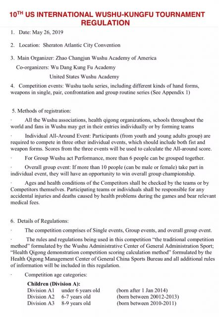 2019 第十届 US International Wushu-Kungfu Tournament项目分类表 Event Code