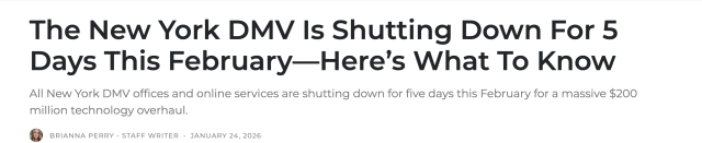 去一趟纽约车管所(DMV),对很多人来说本就不是什么愉快体验。但今年 2 月,情况会更“直接”——因为你可能根本办不了事。
