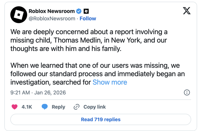 曾怀疑网络结识对象,但警方已排除关联,调查初期,执法人员曾考虑 Thomas 可能是为了见一名在网络游戏平台 Roblox 上认识的人而冒险前往纽约市。但警方随后明确表示,已排除 Roblox 与这起失踪案之间的直接关联。