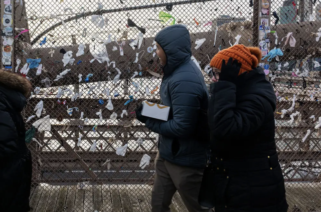 布鲁克林高地居民艾伦·鲍姆几乎每天都会走过这座桥。2月3日起,她开始自发清理围栏上的垃圾,并在社交媒体记录过程。“有一天我突然想,我受够了!”她说。清理两根柱子之间的一小段围栏,大约就要花90分钟。她与志愿组织“Pick Up Pigeons”合作,仅一天就清理下近13磅的纸巾、发圈、收据和创可贴。