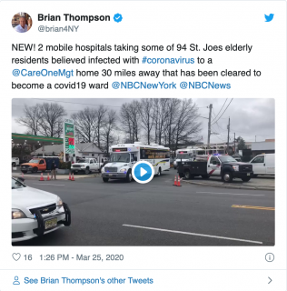 在星期三,St. Joseph养老院关闭,Morris County 的 OEM 官员们全副武装将所有患者转运至 Whippany的一家CareOne 养老中心。