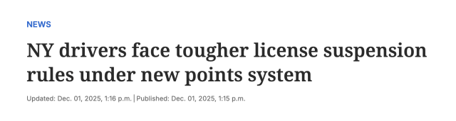 纽约州新规明年2月全面实施!扣分更严、周期更长,驾照吊销风险激增