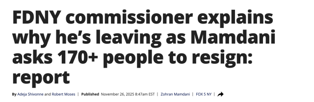 与此形成对比的是,纽约市消防局局长罗伯特·S·塔克在曼达尼赢得选举的第二天就宣布辞职。塔克在接受采访时坦言,离开消防局是一个"复杂而充满情感的决定",并直言不讳地表示:"在意识形态上,毫无疑问,我和市长在一些对我来说非常根本的问题上存在分歧。"