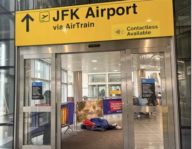 在全美各大机场中,JFK长期位居安检和护照检查等待时间最长、航班延误最多、行李处理失误率最高的榜单前列。如今,无家可归者在机场及周边公共交通节点的聚集,又为这座本就问题缠身的交通枢纽增添了新的尴尬。