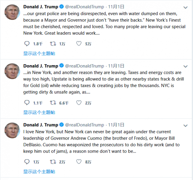 也许警察的滥意执法、以及检察官执意公布川普总统的税收都是川普搬离纽约的原因。