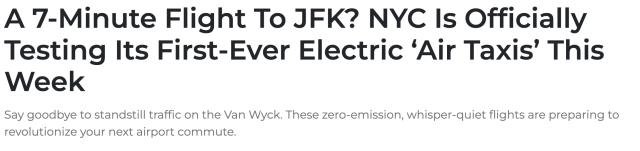 纽约通勤要变天!7分钟飞到JFK!堵车时代要结束了?