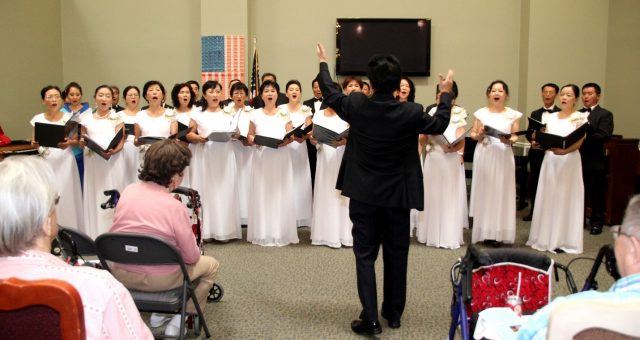 乡音合唱团巴顿2019劳工节音乐会再博喝彩 2019年8月24日夏末新州的星期六下午,风和日丽、舒适宜人。爱迪生市巴顿养老院的耄耋们早已坐在活动厅里耐心等待一台视听盛宴的到来。由新泽西百人乡音合唱团(Edison Chinese Chorus)与该养老院签约的2019年系列音乐会中的第三场即将上演,30多位团员组成的艺术小分队将为老人们送上节日的慰问。今年的前两场音乐会都留下了极好的口碑。 乡音为这场音乐会精心安排了中西合璧、风格迥异、内容丰富的节目。艺术总监为中国国家一级指挥张椿和,钢琴伴奏由青年才俊何宗峻担任。