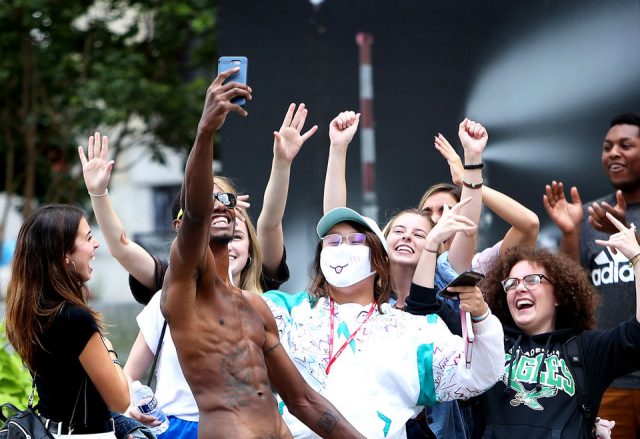 当远处的领骑车手吹响哨声的时候,等待着观看游行的The University of the Arts’ Dorrance Hamilton Hall 的学生们迅速站起来,随着车手越来越近,尖叫声、欢呼声充满了整条街道。令学生们惊讶的是,其中一名车手跑到了他们中间,并与他们合影。