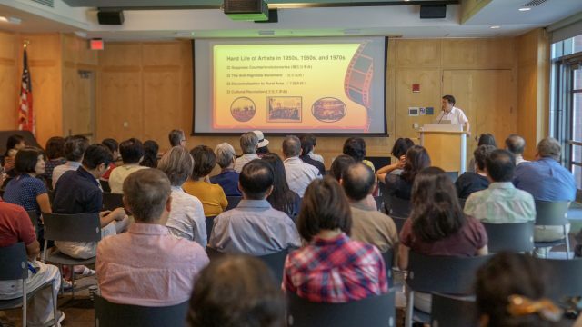 中国电影译制片史专著《棚内棚外》的作者潘争于2019年8月24日上午在普林斯顿图书馆就电影译制片的历史进行了一场近三个小时的讲座和交流。在讲座中,潘争介绍了过去从1949年至1990年代初那四十余年里外国电影译制片在中国的发展历史。