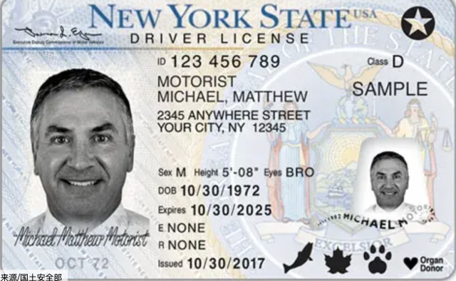 纽约旅客可以直接查看自己驾照正面右上角的标识:
