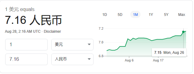近日,美元对人民币汇率已经破7。截止到美东时间8月27日,美金对人民币的汇率已经到达1:7.16,而这也让少数在美留学生和商人叫苦不迭。
