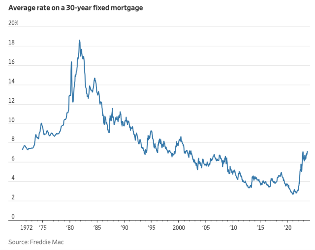 上周美国抵押贷款利率下滑至 7% 左右,是近几个月来的最低水平,但仍是两年前的两倍多。