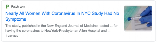 据Patch报道,这项发表在《新英格兰医学杂志》(New England Journal of Medicine)上的研究,在3月22日至4月4日期间,对200多名被纽约长老会艾伦医院(NewYork-Presbyterian Allen Hospital)和哥伦比亚大学医学中心(Columbia University Medical Center)收治的孕妇进行了新冠病毒测试。