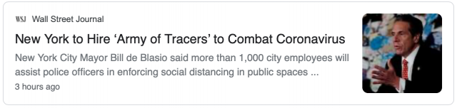 库默说,他们将在疫情严重地区为每10万人培训30个“感染追踪员”。如果达到该估计值,纽约州全州可能需要6,400至17,000个感染追踪员。他说:“这将需要有规模的追踪部队。”
