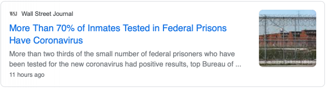 据侨报纽约网报道,监狱之中日渐严重的新冠病毒危机,让立法人员和活动人士都开始质疑联邦监狱部(Federal Bureau of Prisons)是否采取了足够的措施来保护近15万在联邦监狱中服刑的囚犯。