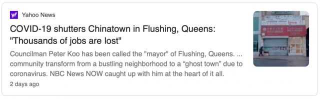 据侨报纽约网报道,日前市议员顾雅明接受NBC的采访,通过镜头介绍疫情下的法拉盛。顾雅明称新冠疫情是一生只此一次的经历,而且并不是一个好的经历,但必须要从中获取教训。