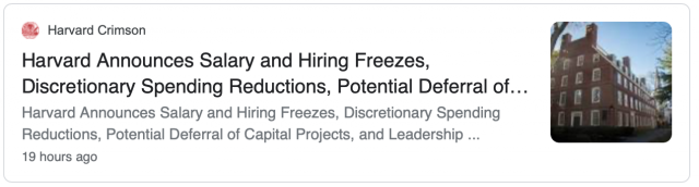 据侨报纽约网报道,由于新冠疫情对经济造成的冲击,哈佛大学(Harvard University)正在立即停止雇佣冻结薪资,取消或推迟可自由支配开支(discretionary spending),并且延迟部分资本项目。