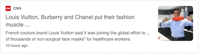 医疗物资紧缺 奢侈时尚品牌“改行”做口罩