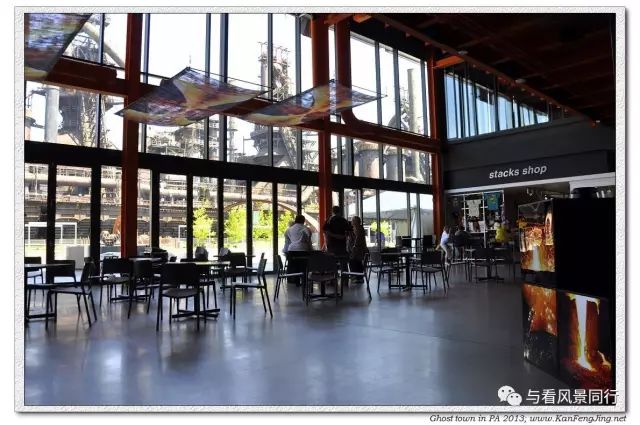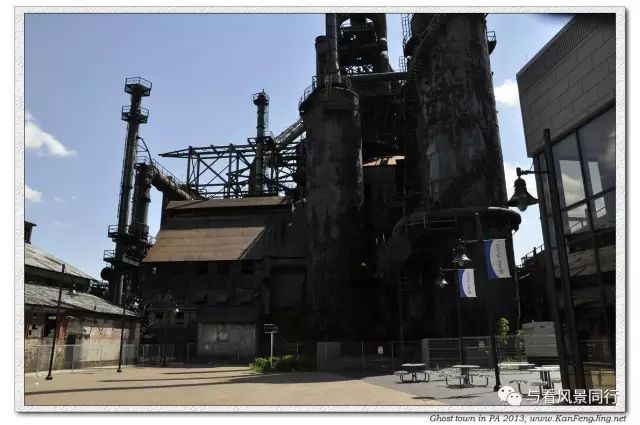这家钢厂在1980年代以后基本处于限制状态,2000年代以后正式关闭。期间几经转手,还有来自中国的企业买断这个废弃的企业。进入厂区的大门旁边,清楚的留下了一些汉字。宾州为了改造老的产业基地,实现转型,创造新的工作机会,做了巨大努力。前边曾介绍过明星城市。美国百万富豪的摇篮,匹兹堡,那是一个转型成功的典范。而伯利恒的这座钢铁鬼城,也正在转型的路上,看上去已经取得成效,这里是一个远近文明的休闲区,当然,还有一座建在旧钢厂的巨大厂房里的大型赌场,附带酒店。