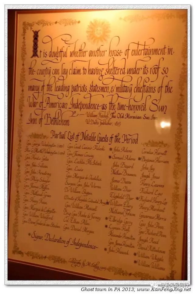 从废弃的钢厂过河,就是美国历史“悠久”的小城伯利恒。这里有美国第一所女子学院,有建于1740年代的主街,还有美国独立前,许多名人聚会商讨美国独立事宜的 Sun Inn (1758)。这里曾接待了四位早期美国总统,包括第一位和第二位美国总统,还有美国历史上第一对父子总统。这是一个保存着美国传统和历史的地方。一个让时间停住脚步,探寻美国独立前的风貌的地方。