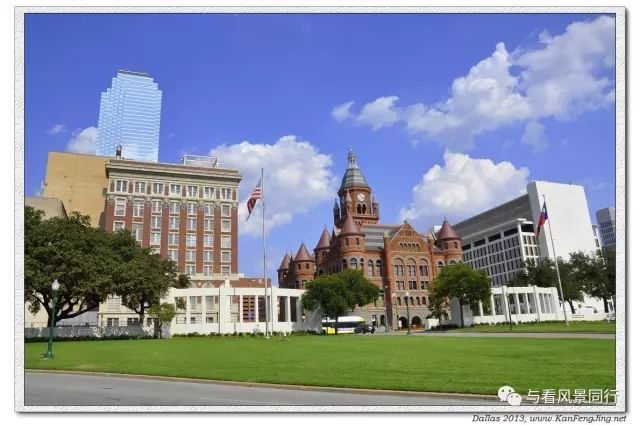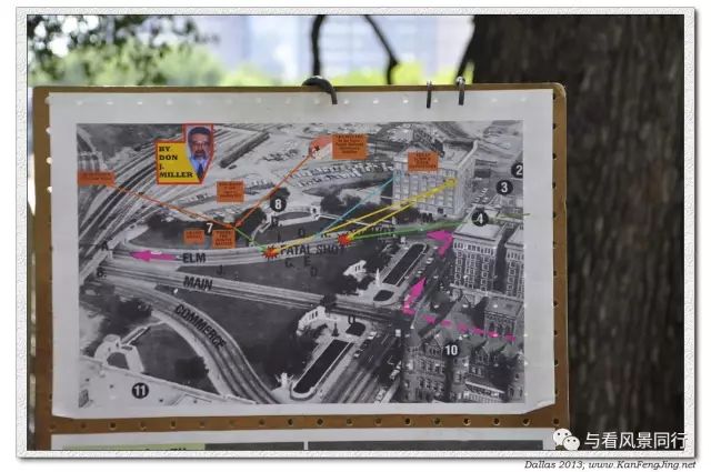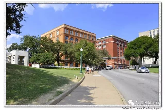 1. 这里就是肯尼迪总统被刺杀现场,中间那栋建筑,顶层(6楼)最右边的窗子,就是在那里射出的子弹击中肯尼迪