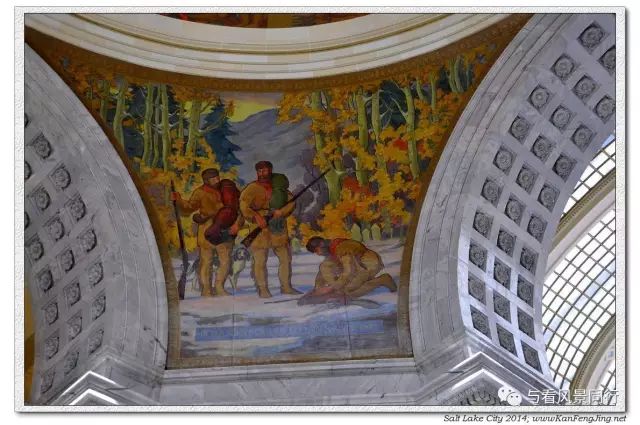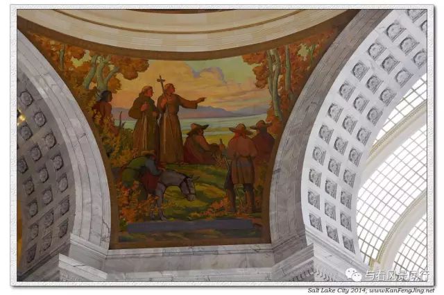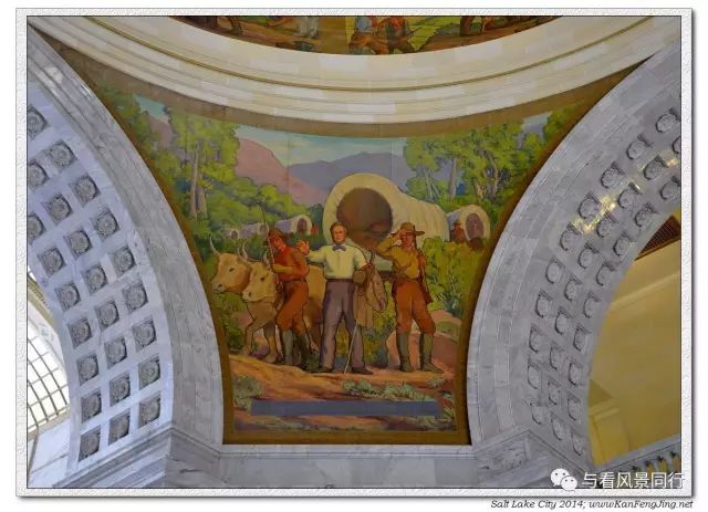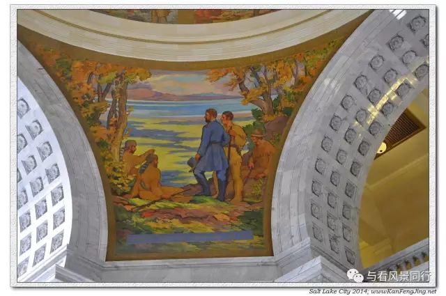 5. 议会大厦穹顶下面是大幅壁画,表现了犹他州的由来和历史