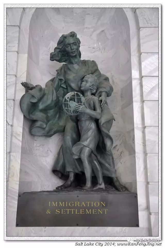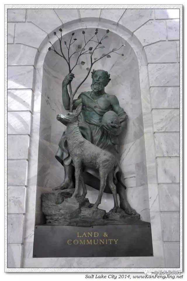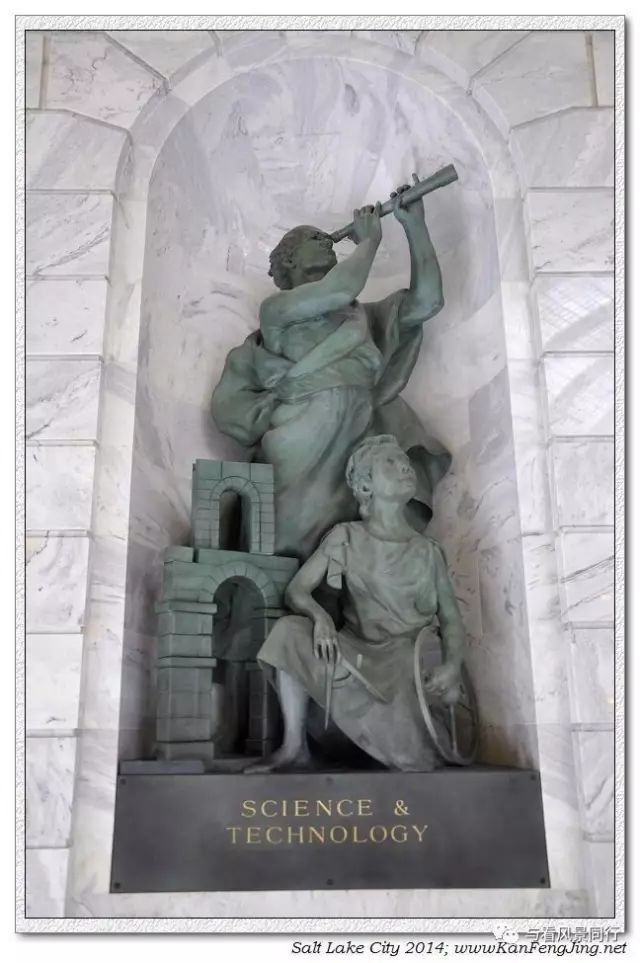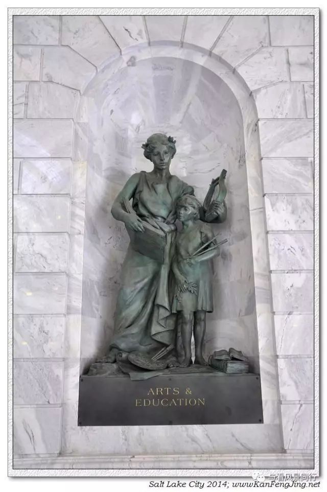 12. 穹顶下的大厅,四个角有四个雕塑,象征犹他州的四大基石:移民与定居,土地与社区,科学与技术,艺术与教育