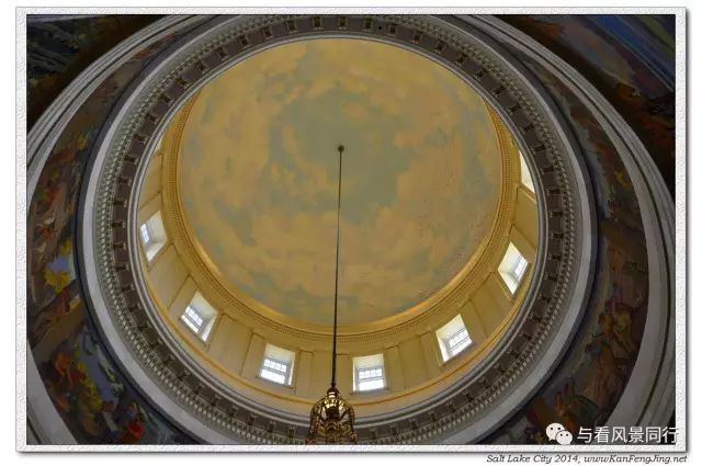 8. 穹顶下的四个角,各有一副壁画,这一副壁画的中间是是犹他州之父,带领众人移民到犹他地界的 Brigham Young