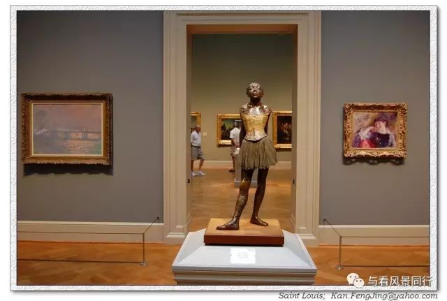 没有想到圣路易斯艺术博物馆会有这么多好东西. 我只计划了一个半小时, 进门就问服务人员哪些展厅是最精彩的? 答曰, 两个欧洲绘画展区和古埃及展区, 其中一个欧洲展区正在整修。走了一圈下来, 发现还真是有不少传世绝品: 莫奈晚年的睡莲与早年作品, 几幅梵高的精彩大作, 伦伯朗, 雷诺阿, 高更, 迪加, 毕萨罗, 等。古埃及展区的东西与埃及博物馆的没法比, 与大都会也相差悬殊, 但是三具保存很好的木乃伊分属不同年代, 刚好反映了新王国时期与托勒密王朝的不同文化, 还有制作木乃伊的差别。