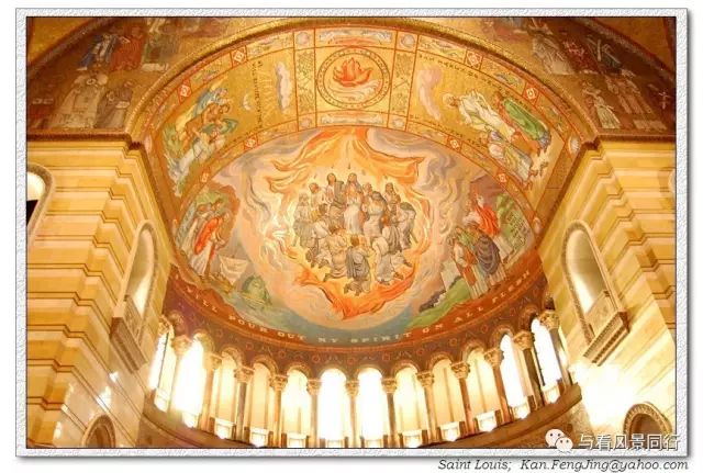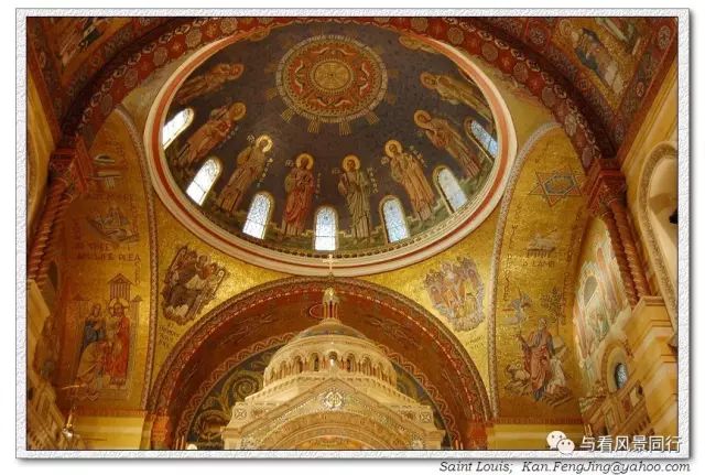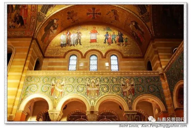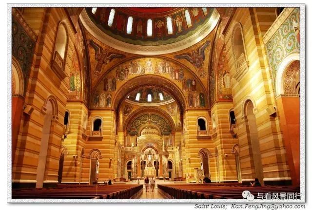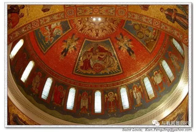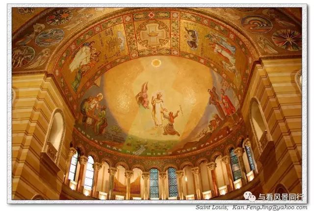 在1904年的奥运会和世界博览会以后, 新教堂于1905年开始设计, 1907年奠基, 历时80多年, 在1988年正式完工。 教堂设计是拜占庭与罗马建筑相结合的风格, 在十字形状的大厅安排了一大三小共四个穹顶(威尼斯的圣马可教堂有五个穹顶)。 最令人瞩目的是用了大量的马赛克来装饰, 总共超过四千万片, 七千种不同颜色, 总面积约八千平方米。 有20位艺术家参与了这个世界上最大的马赛克工程, 真正是金壁辉煌, 不比欧洲的大教堂逊色。