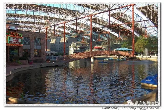 几十年前, 当公路与航空还没有把铁路挤出交通市场, 圣路易斯是南来北往, 东路西行的铁路枢纽。联合车站(Union Station)见证了那段辉煌: 约十层楼高的车站大厅, 数不清有多少个站台, 反正是一眼看不到边。现在, 这里成了一个巨大的游玩之地, 有凯悦酒店, 水上游乐场, shopping mall, 很多餐馆酒吧, 从高档餐厅到 food court, 应有尽有。此地在 Forest 公园与市中心之间, 位于 Market St 靠近圣路易斯大学校园。那个校园也有许多漂亮建筑。