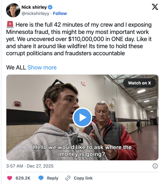 2025年12月27日,一段偷拍视频在社交平台上迅速扩散。视频里,独立记者尼克·雪莉站在明尼阿波利斯一栋看似废弃的建筑前,镜头扫过门口那块显眼却荒诞的招牌——“Quality Learning Center”,单词“Learning”被拼错。大厅没有灯光,停车场空空荡荡,看不到任何孩子活动的痕迹。