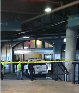 新泽西州Transit公司发言人南希·斯奈德说,事发时,嫌疑人驾驶车辆向右转,直接闯入车站的候车室,并多次用车撞击候车室的金属栏杆。这次事故造成了候车室门的严重损坏。好在列车服务没有受到影响,但售票窗口已经关闭,上车补票的额外费用被暂时取消。