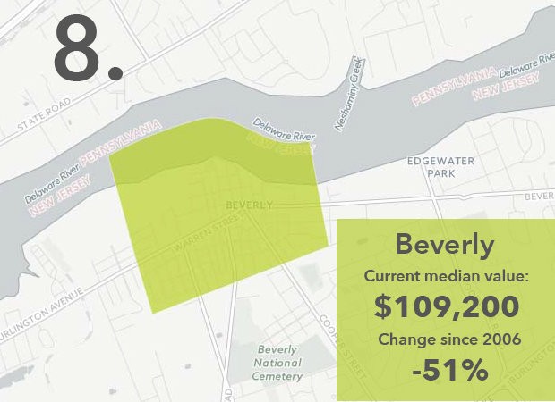 虽然有些地区的表现比大多数地区好,但实际上新泽西州只有两个城镇的房屋价值中值高于市场高峰期:Hoboken和Weehawken。