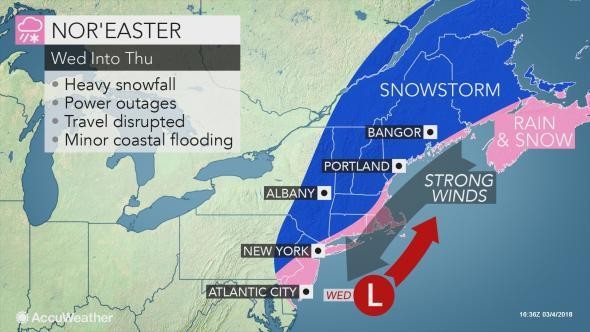 而来自AccuWeather的预报员表示,本周的风暴可能会导致的停电,并造成航班延误和通勤不便。