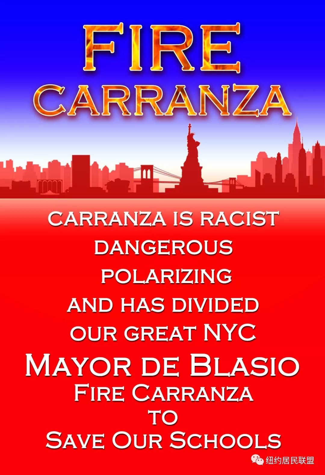 纽约市市长白思豪与他任命的教育局长卡烂渣,故意挑起种族之间矛盾,他们所搞的“取消特殊高中考试”,“取消资优班”,目的是为了转移视线, 掩盖纽约市失败的公校教育改革