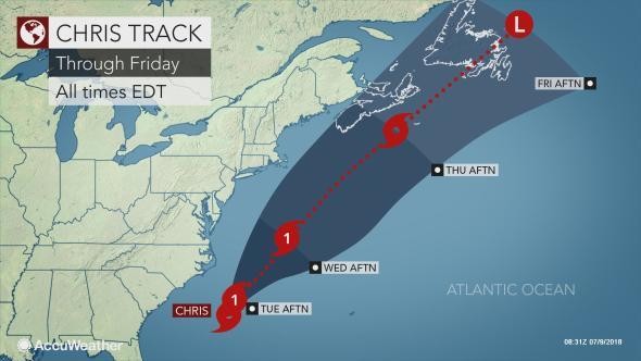 热带风暴克里斯在周二晚些时候已经加强成为飓风,目前它仍在北卡罗来纳州海岸附近盘旋,新泽西州面临飓风威胁。